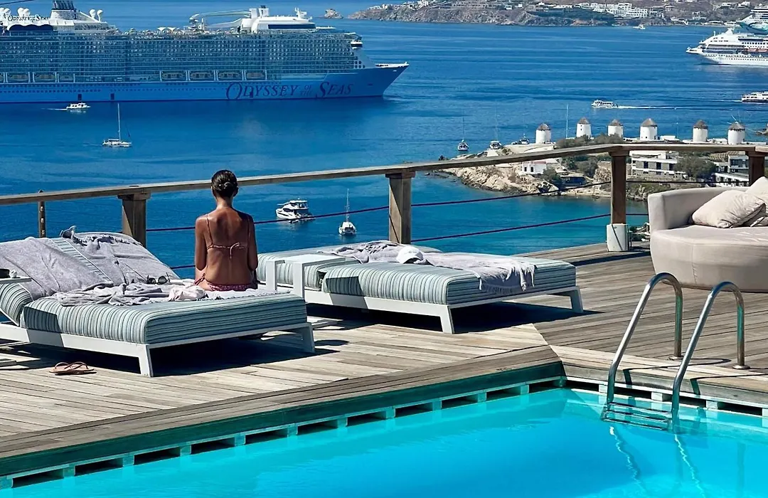 Het is gelegen in een toeristisch gebied van Mikonos, 2 km van het centrum van de stad. Ook het zandstrand is binnen 12 minuten te voet bereikbaar. Dit deluxe hotel ligt in de buurt van de Egeïsche Zee.